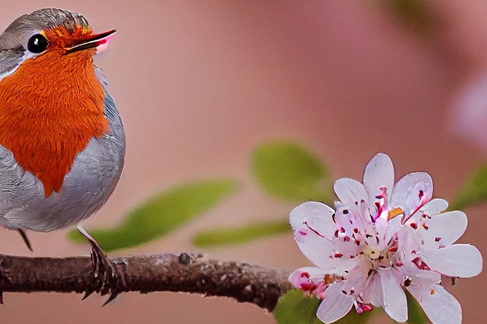 Rotkehlchen auf einem Ast im Frühling Illustration