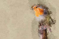 Bestelle dieses Vögel Wandbild Rotkehlchen auf einer Stange (Kunst) von Art by Jeronimo als Reproduktion auf Leinwand, Alu-Dibond, als Poster, Fototapete, ArtFrame oder Acrylglasbild, maßgefertigt in höchster Qualität.