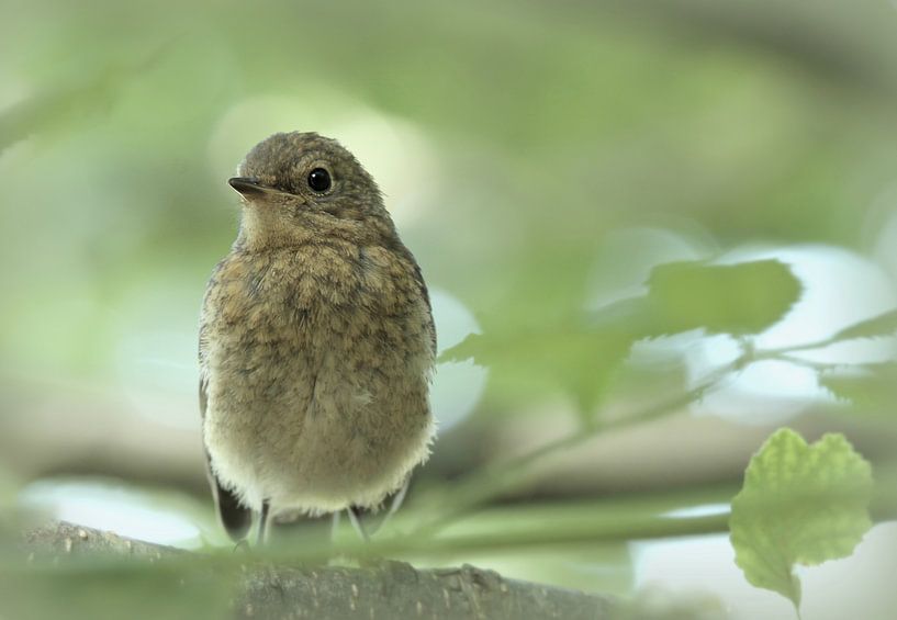 Frühling, eine wunderbare Zeit der jungen Diere. Dieses junge Rotkehlchen kam immer wieder, um einen neugierigen Blick zu werfen.