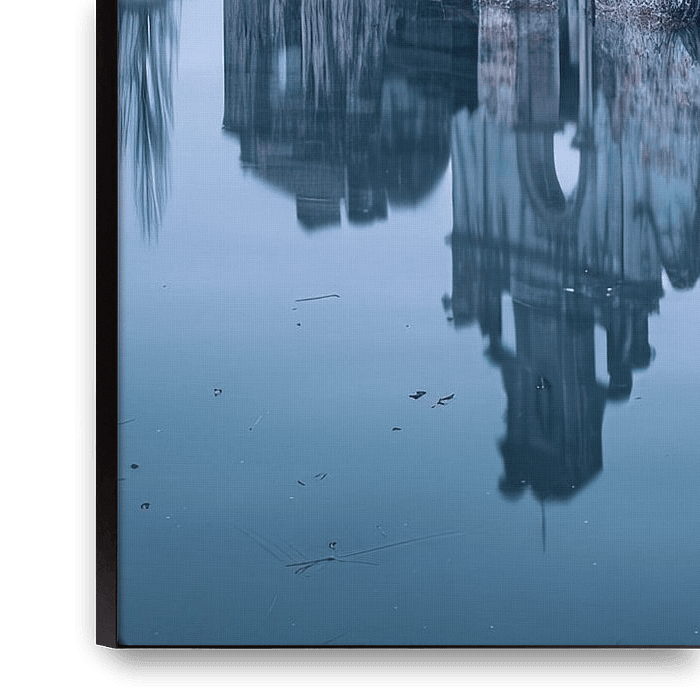 Dieses beeindruckende Kunstwerk, „Verlorene Spiegelung“, fängt die eindringliche Schönheit einer verfallenen Ruine ein, die sich perfekt auf der ruhigen Wasseroberfläche spiegelt. Die Ruine, einst ein stolzes Gebäude, zeigt nun eine zerbrochene Fassade, deren Risse und bröckelnden Wände Geschichten vergangener Tage erzählen. Dieses…