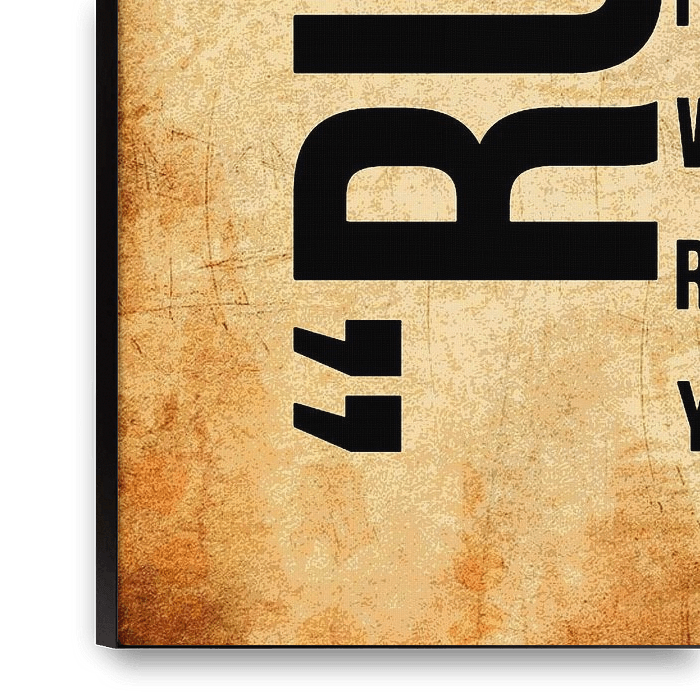 Das Bild zeigt ein motivierendes Zitat, "Beherrsche deinen Geist oder er wird dich beherrschen, " in fetten schwarzen Buchstaben auf einem strukturierten, gealterten Hintergrund, der an Pergamentpapier erinnert. Der Hintergrund ist überwiegend ein warmes, erdiges Braun mit subtilen Andeutungen von Orange und Gelb, wodurch eine…