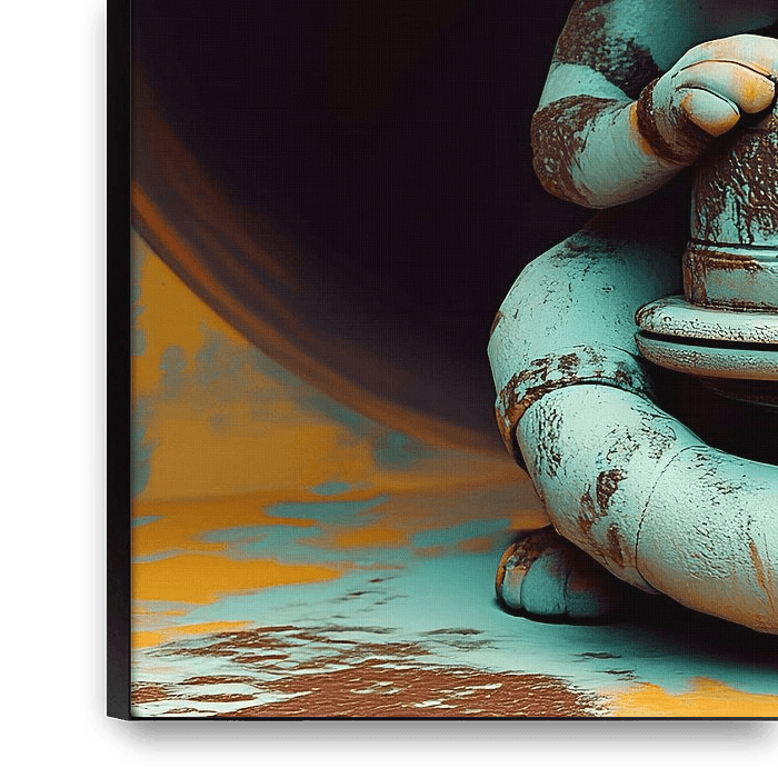 Dieses fesselnde Werk zeigt eine Kreatur mit großen Augen, die die Grenze zwischen dem Organischen und dem Mechanischen verwischt. Ihr verrosteter, verwitterter Körper lässt sie wie ein Relikt aus einer vergessenen Zukunft erscheinen, während ihr unschuldiger Blick ein Gefühl kindlichen Staunens hervorruft. Die Kreatur, die ein…