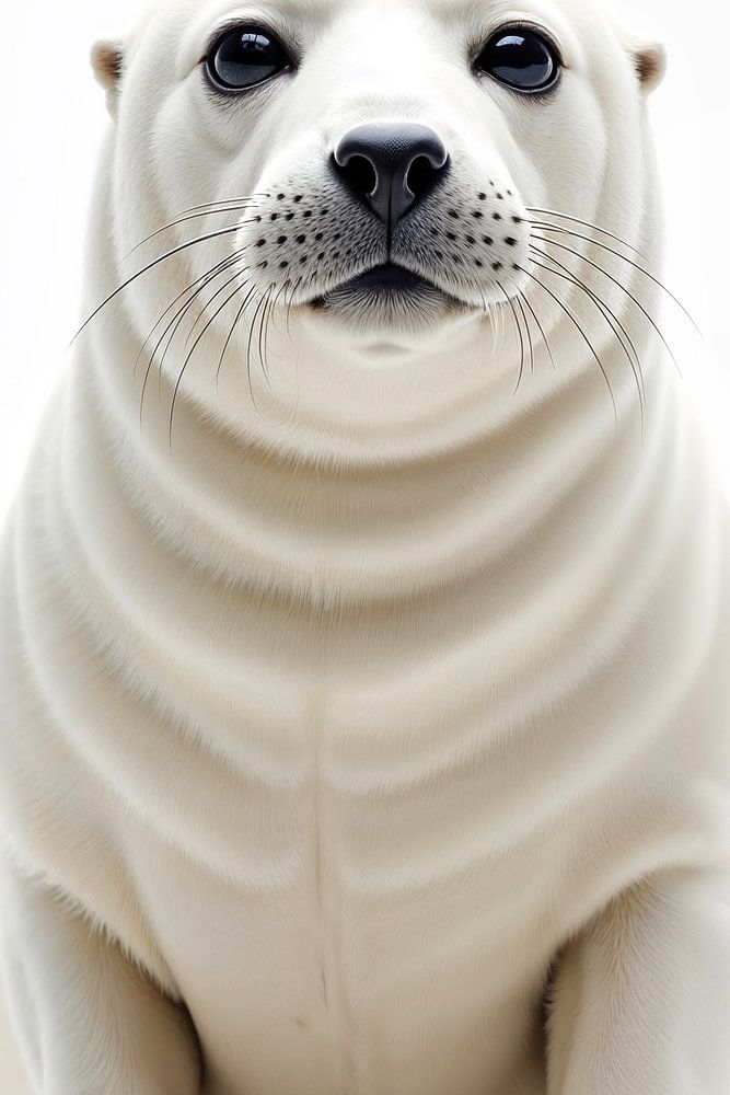 In stiller Vollkommenheit erscheint der Seehund im grenzenlosen Weiß, als wäre er aus reiner Ruhe und Licht geformt. Die sanften Rundungen seines Körpers wirken nahezu skulptural, während das feine, glatte Fell das Licht in weichen Übergängen reflektiert. Dezente goldene Akzente an den Krallen setzen edle Highlights und verleihen der…