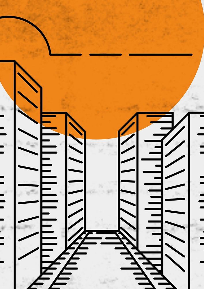Erstellen Sie Kunstwerke aus Objekt Stadtbild in einer Linie Kunst und Grunge Hintergrund