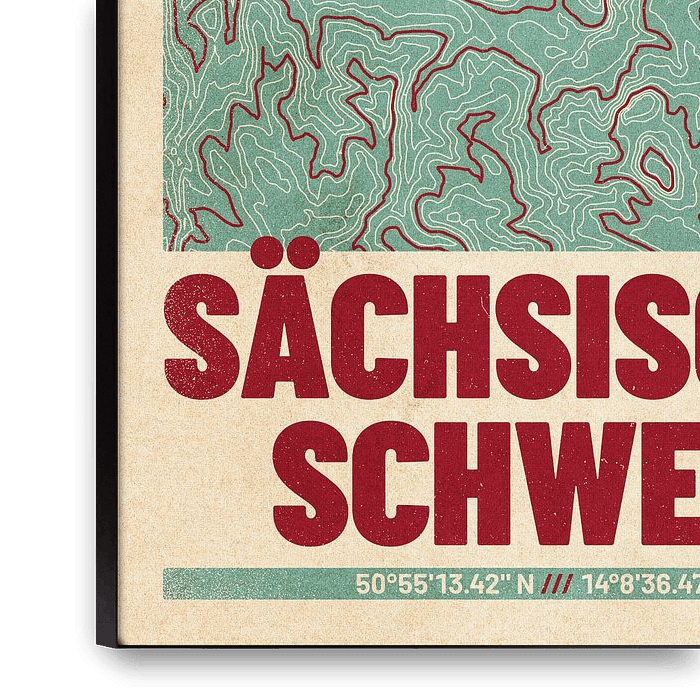 Die Sächsische Schweiz im Elbsandsteingebirge als topografische Karte. Landkarte im Retro-Stil mit Höhenlinien. Stilsicherer Print für Wanderer, Bergsteiger und Outdoor-Fans – auch als Geschenkidee!