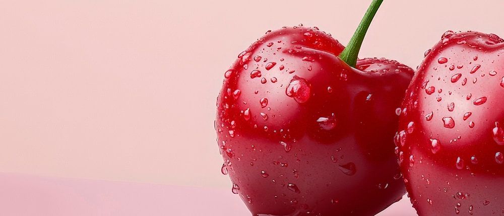 Saftige, glitzernde Kirschen liegen verführerisch auf einer sanften, pastellfarbenen Fläche, deren Tropfen wie kleine Kristalle funkeln. Diese lebendigen Farben und die frische, einladende Ästhetik verleihen jedem Raum eine spritzige Note. Ideal für die Küche, wo sie Appetit anregen und eine fröhliche Atmosphäre schaffen.