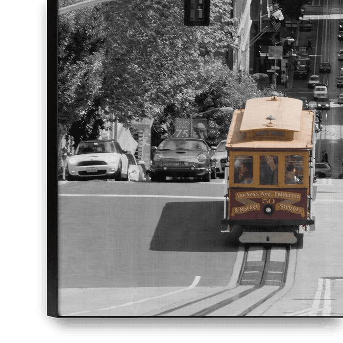Hier ist die Califonia Street (Höhe Stockton Street) zu sehen. Eine klassische Straßenszene aus dem Herzen von San Francisco.