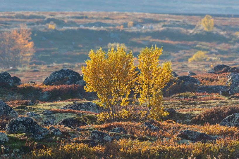 Sandbirke, Hängebirke, Weissbirke, Betula pendula, Betula alba, Betula verrucosa, Birke im Fjäll, Herbst, Rondane Nationalpark, Dovre, Oppland, Norwegen