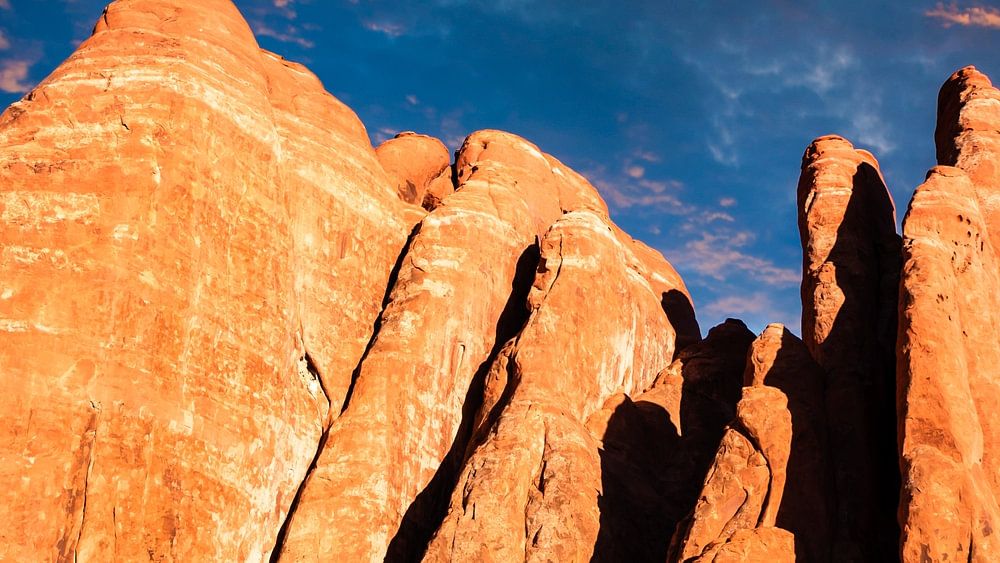 Sandstein Felsen mit Gewitterwolken im Arches National Park Utah USA
