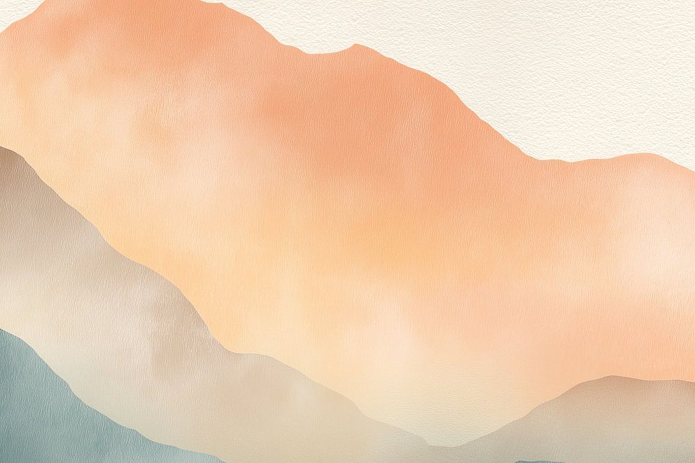 Soft Mountains Horizon ist ein anspruchsvolles Aquarell, das eine minimalistische Berglandschaft in sanften, beruhigenden Farben darstellt. Die Komposition besteht aus fließenden, sich überlagernden Bergformen, gemalt in einer Palette, die subtil von Hellgrau zu Pfirsichorange übergeht. Ein Hauch von Blaugrün taucht am Fuße der Berge auf und verblasst allmählich zu wärmeren Tönen, wenn der Blick nach oben wandert.