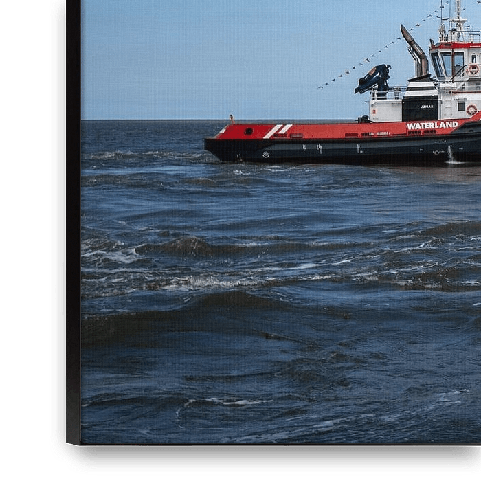 Bestelle das Foto Schlepper Waterland von Charlotte Gohl als Reproduktion auf Leinwand, Alu-Dibond, als Poster, Fototapete oder Acrylglasbild.