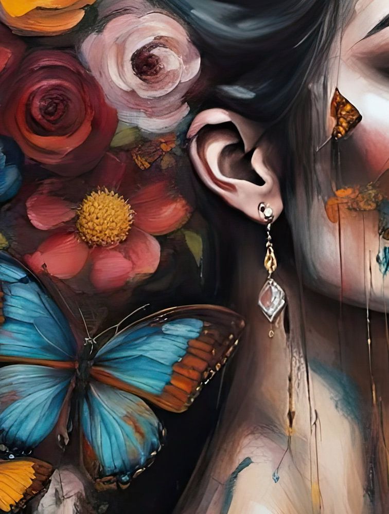 Gemälde Schmetterlinge und Blumen Nr. 76.75 - ein Gemälde aus einer Serie von Bildern über Träume, Farben, Schmetterlinge und Blumen.