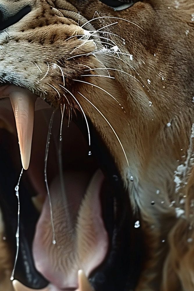 Holen Sie sich die Kraft und Majestät der Natur ins Haus mit diesem atemberaubenden Foto eines brüllenden Löwen im Schnee. Perfekt für alle Tierliebhaber oder diejenigen, die ihren Innenräumen einen Hauch von Abenteuer verleihen wollen.