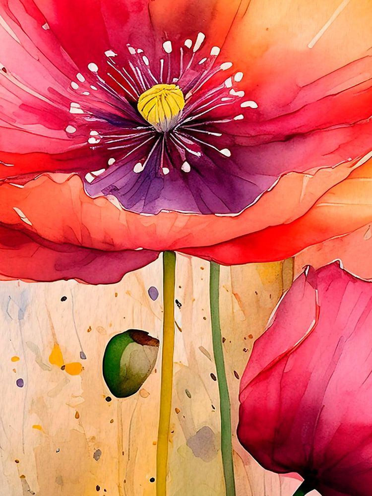 Ein stimmungsvolles Kunstwerk mit einem Paar zarter Mohnblumen.