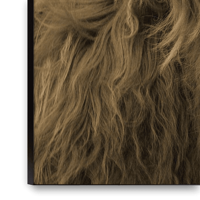 Bestelle dieses Schottische Hochlandrind Wandbild Schotse hooglander kop kalf sepia von Sascha van Dam als Reproduktion auf Leinwand, Alu-Dibond, als Poster, Fototapete oder Acrylglasbild.