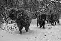 Schottische Highlander im Schnee in der Nähe des Nieuwe Meer in Amsterdam.
