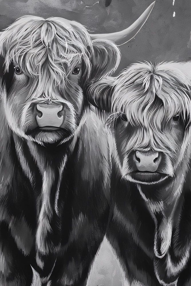 Dieses schöne Kunstwerk zeigt zwei schottische Highlander in einem raffinierten monochromen Stil. Die Details des Fells und der Kontrast zwischen Hell und Dunkel verleihen dem Gemälde einen zeitlosen Charme. Es eignet sich ideal als Blickfang in einem modernen Wohnzimmer oder Büro und bringt eine ruhige und natürliche Atmosphäre in jeden Raum. Die ausdrucksstarke Komposition ist nicht nur visuell beeindruckend, sondern erzählt auch eine Geschichte von Ruhe und Verbundenheit mit der Natur. Perfekt für Liebhaber von Tieren und minimalistischer Kunst.