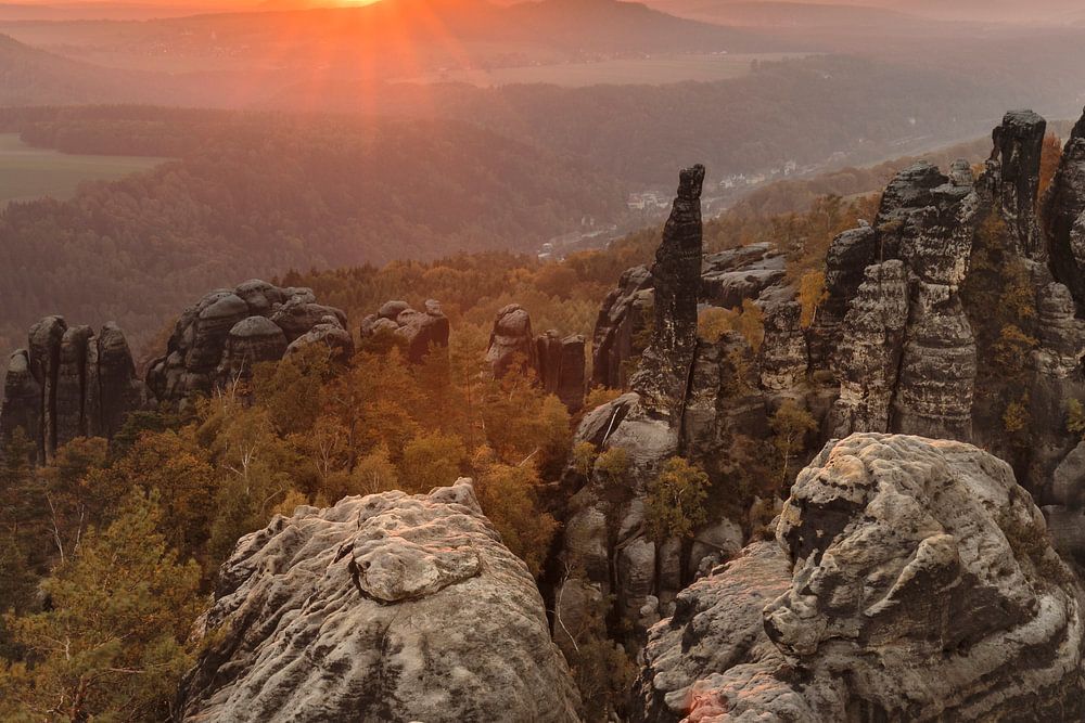 Schrammsteine bei Sonnenuntergang, Elbsandsteingebirge, S