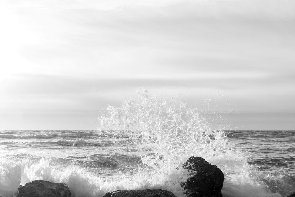 Das Plätschern der Wellen in der Brandung bei Sonnenuntergang ist romantisch.