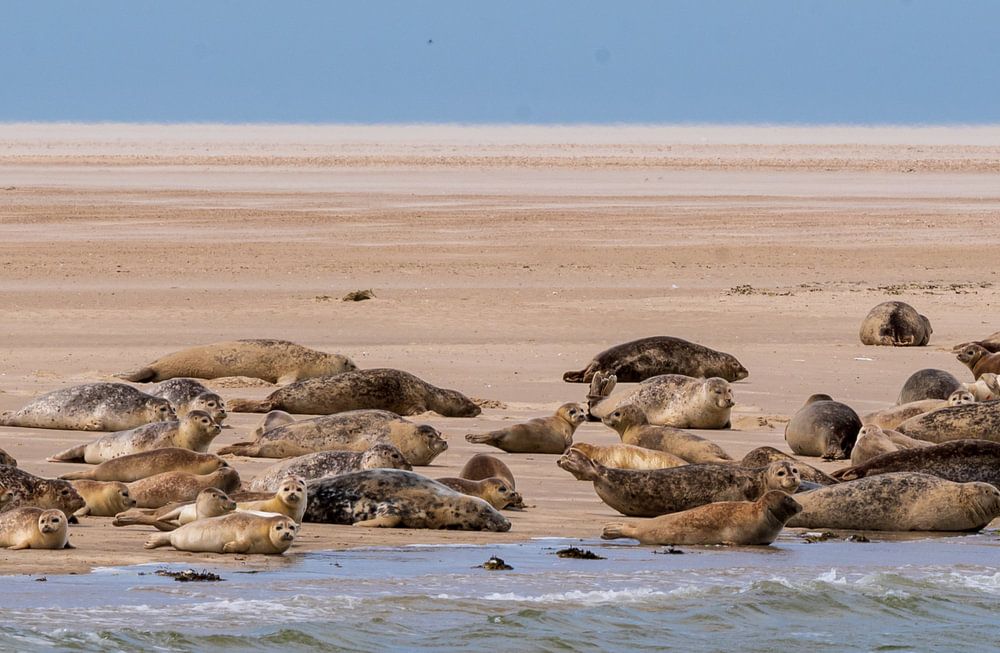 Das Wattenmeer beheimatet eine große Anzahl von Robben. Sowohl der Seehund als auch der Kegelrobbe liegen häufig auf den Sandbänken.
