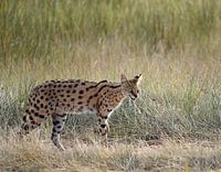 Der Serval ist ein Mitglied der Katzen. Das Tier ist mittelgroß und sehr beweglich. Dieses Bild wurde im Ngorongoro-Krater im Norden Tansanias aufgenommen.