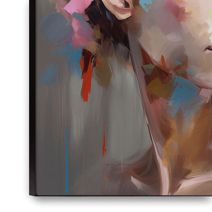 Abstraktes farbiges Porträt einer schönen jungen Frau im impressionistischen Stil mit groben Pinselstrichen auf Leinwand.
