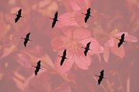 Bestelle dieses Blumen-Wandbild Silhouetten von Zugvögel von Matthias Spartz als Reproduktion auf Leinwand, Alu-Dibond, als Poster, Fototapete oder Acrylglasbild.