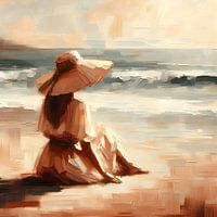 Über „Sitzend am Strand, Frau mit Hut“ von FoXo Art