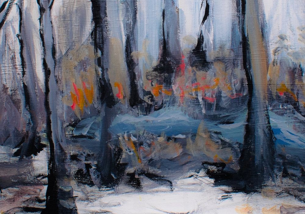 Mit Acrylfarbe eine verschneite Landschaft gestalten.