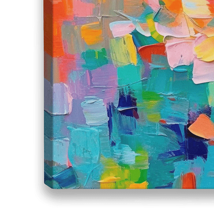 Modernes abstraktes Kunstwerk, das die visuellen Sinne mit seiner lebendigen Farbpalette und dynamischen Komposition anregt. Die Pinselstriche sind ausdrucksstark mit warmen Tönen, die eine fröhliche Sommeratmosphäre schaffen.