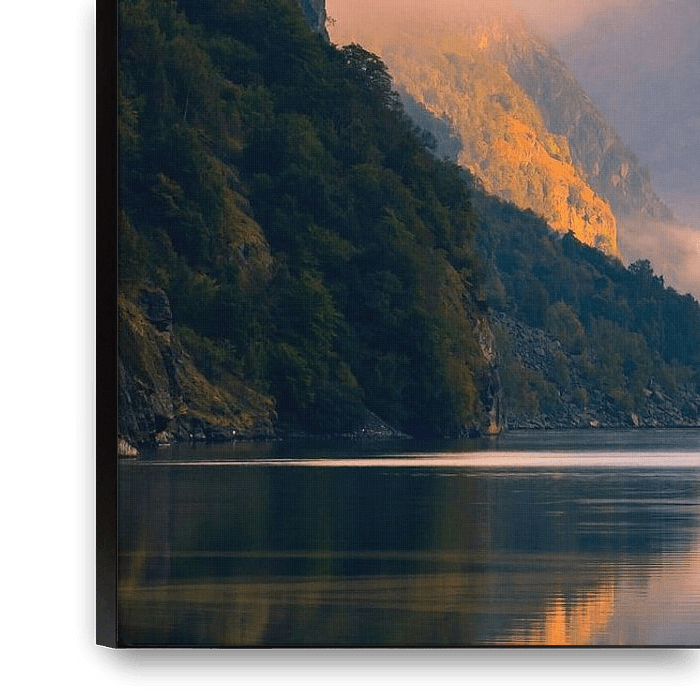 Bestelle dieses Landschafts-Wandbild Sonnenaufgang im Aurlandsfjord, Norwegen von Henk Meijer Photography als Reproduktion auf Leinwand, Alu-Dibond, als Poster, Fototapete oder Acrylglasbild.