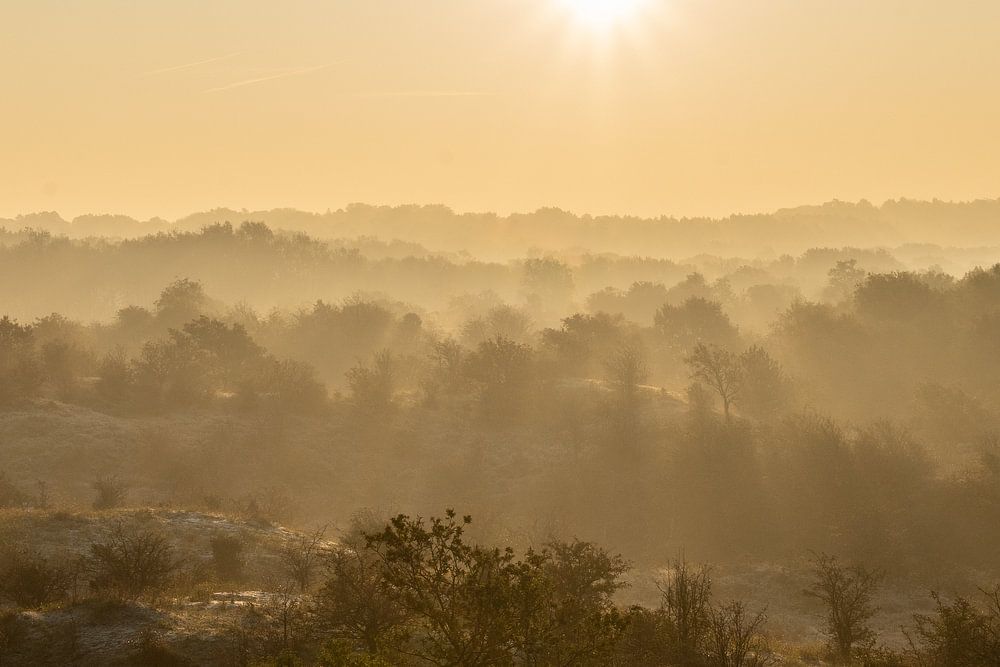 Die Sonne geht in den Dünen des Nationalparks Zuid-Kennemerland auf. Das Foto wurde an einem kalten Morgen im November aufgenommen.