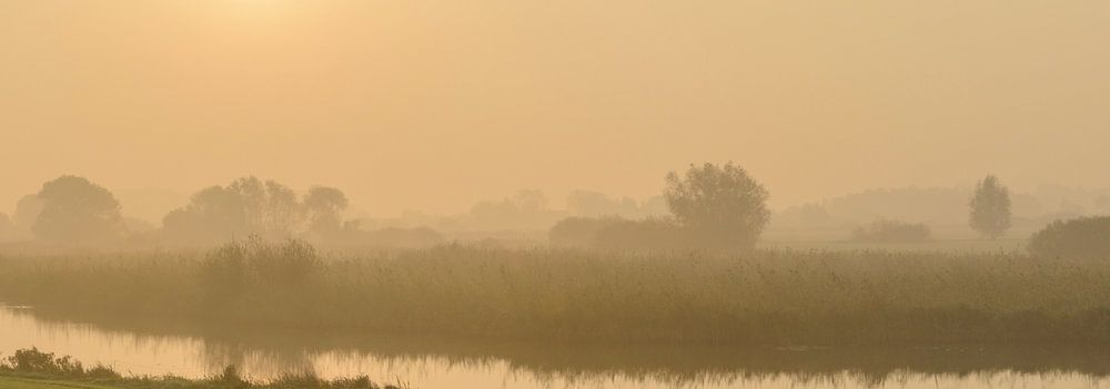 Sonnenaufgang über der IJssel an einem schönen Herbstmorgen in der Region IJsseldelta in Overijssel, Niederlande.