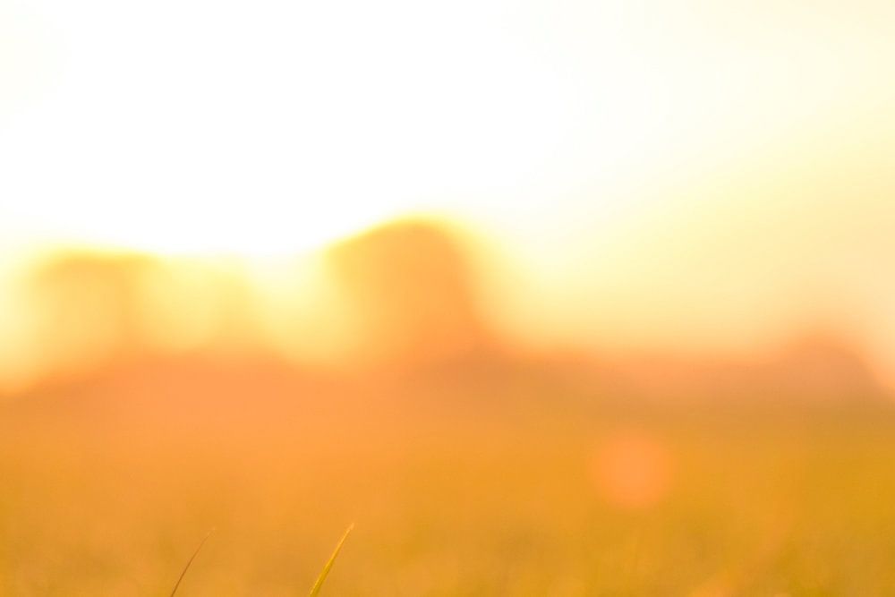 Sonnenaufgang über einem Feld mit Tau auf dem Gras an diesem frühen Frühlingsmorgen im Delta des Flusses IJssel.