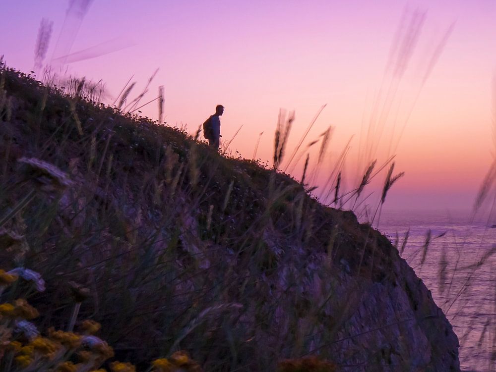 Noch vor Sonnenaufgang gelang es uns, dieses Foto mit der Silhouette einer Person im Vordergrund an der schönen Costa Quebrada zu machen.