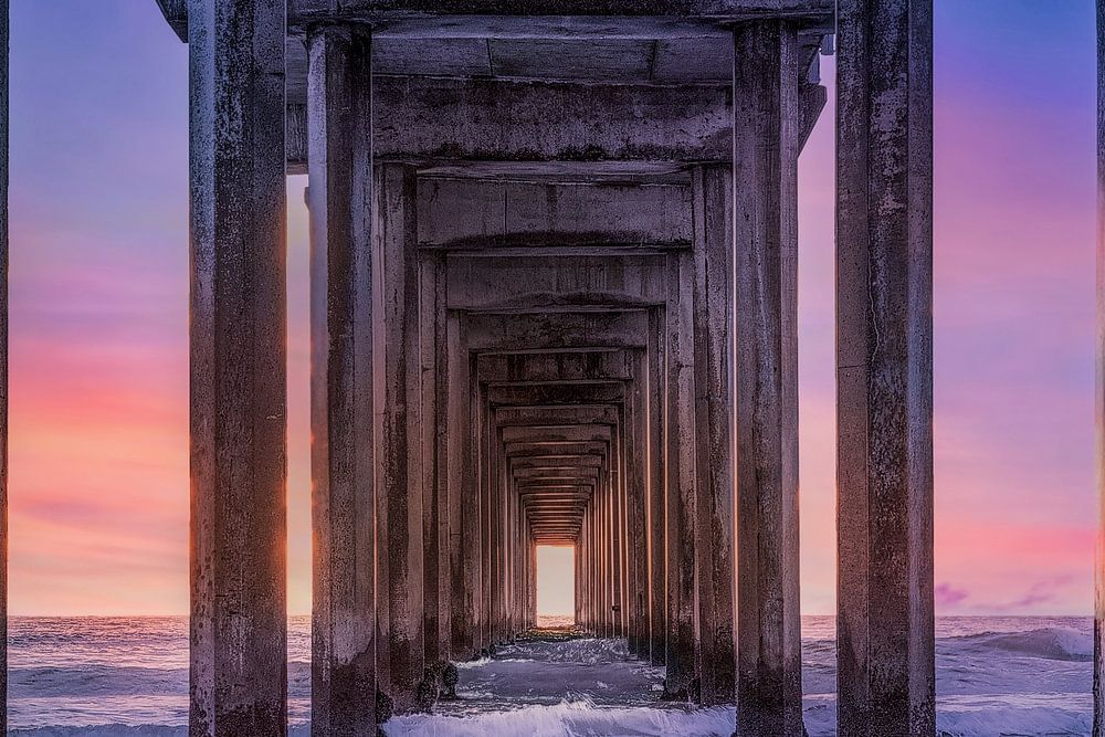 * La Jolla Dream * Sonnenuntergang am Meer in San Diego / Los Angeles / Kalifornien. Anlegesteg / Brücke am Strand unter einem schönen Abendhimmel. 320002ays