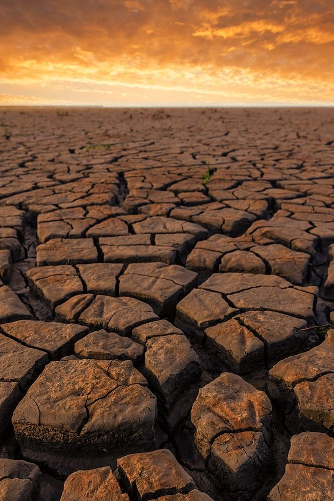 Ternaard, Friesische Wattenküste - Wunderschöne Strukturen im getrockneten Lehm des Wattenmeeres führen Sie an einem schönen Sommerabend zum Horizont, während die Sonne im Westen untergeht und schöne Abendrot-Töne am Himmel erzeugt. Ein atemberaubender Sonnenuntergang über einem der schönsten Naturschutzgebiete der Niederlande.