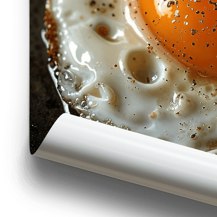 Ein detailliertes, realistisches Gemälde eines perfekt gebratenen Spiegeleis, das jedes Detail des knusprigen Randes und der glänzenden Dotter einfängt. Ideal für Kochbegeisterte und als stilvolles Küchenaccessoire. Dieses Bild ist ein Muss für jeden, der seine Liebe zum Kochen stilvoll präsentieren möchte.