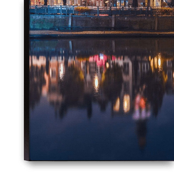 Bestelle das Foto Spiegelung von De Grote Kerk in De Nieuwe Haven in Breda von Joris Bax als Reproduktion auf Leinwand, Alu-Dibond, als Poster, Fototapete oder Acrylglasbild.