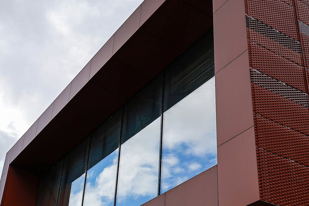 Dieser eckige Würfel im Himmel schien zu sagen, dass er Schönheit erkennt und sie zurückspiegelt. Ich versuchte mir vorzustellen, wie die Aussicht für die Menschen im Inneren dieser Quader aussehen würde. Die rostig aussehenden Stahlplatten, die den Kubus bedecken, schienen in starkem Kontrast zu den wogenden Wolken und dem sanften Blau des Himmels zu stehen.