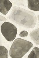 Abstrakte Komposition aus abgerundeten Steinen auf hellem Grund. Die Formen sind sorgfältig unterteilt und haben eine weiche, natürliche Textur mit sichtbaren Pinselstrichen. Die Farben sind bewusst wegen ihres beruhigenden Charakters gewählt und erinnern an Flusssteine oder einen Zen-Garten.