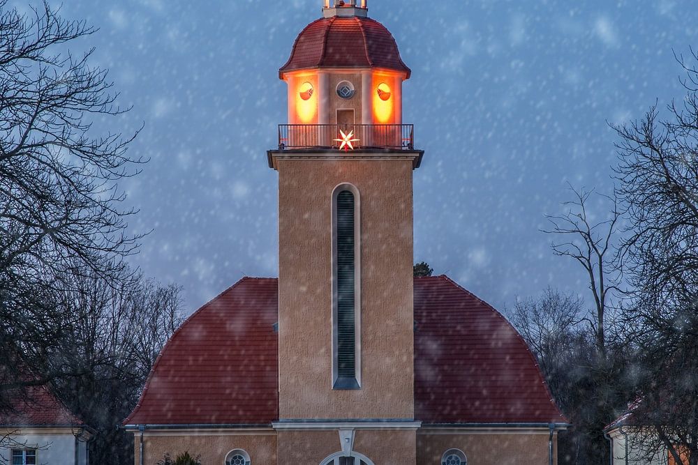 Blick auf die Stadtkirche von Lauta in Lausitz/Sachsen in Winter