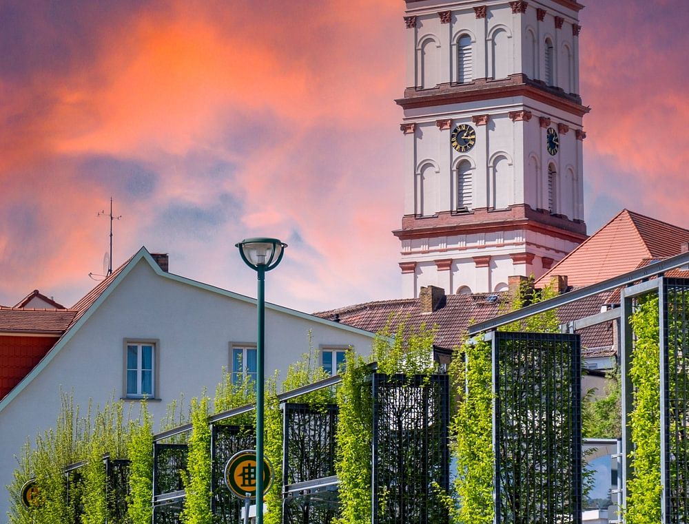 Stadtkirche in Neustrelitz in Mecklenburg-Vorpommern bei Sonnenuntergang