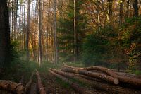 Im Vordergrund liegen gefällte Stämme, während sich der Herbstwald zwischen den Bäumen weiter öffnet. Warmes Licht fällt durch das Laubdach und unterstreicht die Farben der Jahreszeit. Ein ruhiges, klares Bild, in dem Struktur und Natur aufeinander treffen. Ein ruhiges Gesamtbild mit viel Tiefe, das den Eindruck vermittelt, man könne…