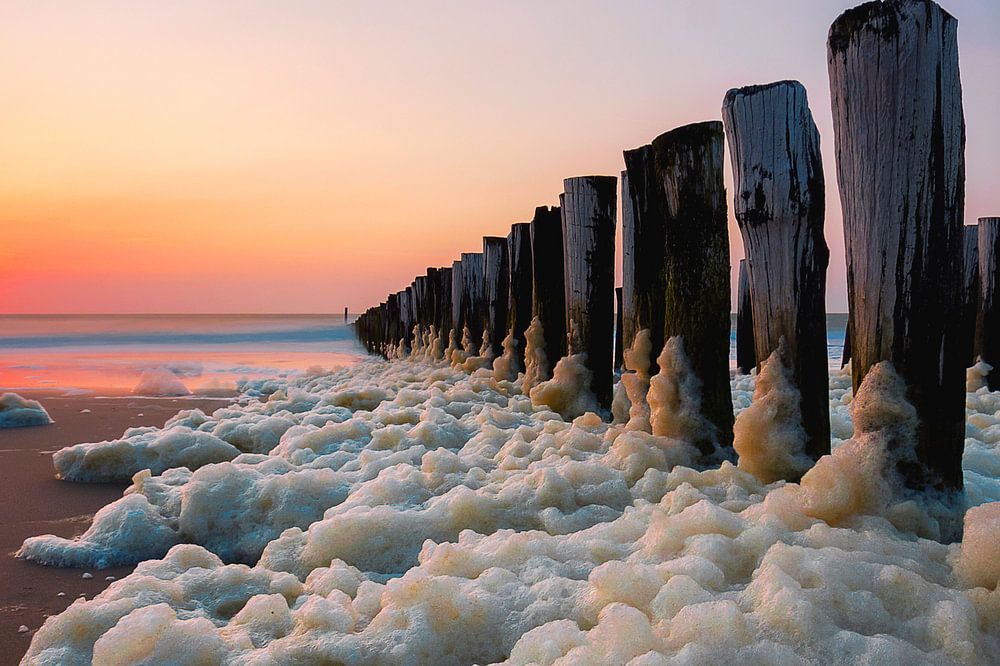 Sonnenuntergang am Strand des Naturschutzgebiets Manteling in Oostkapelle, Juni 2018.