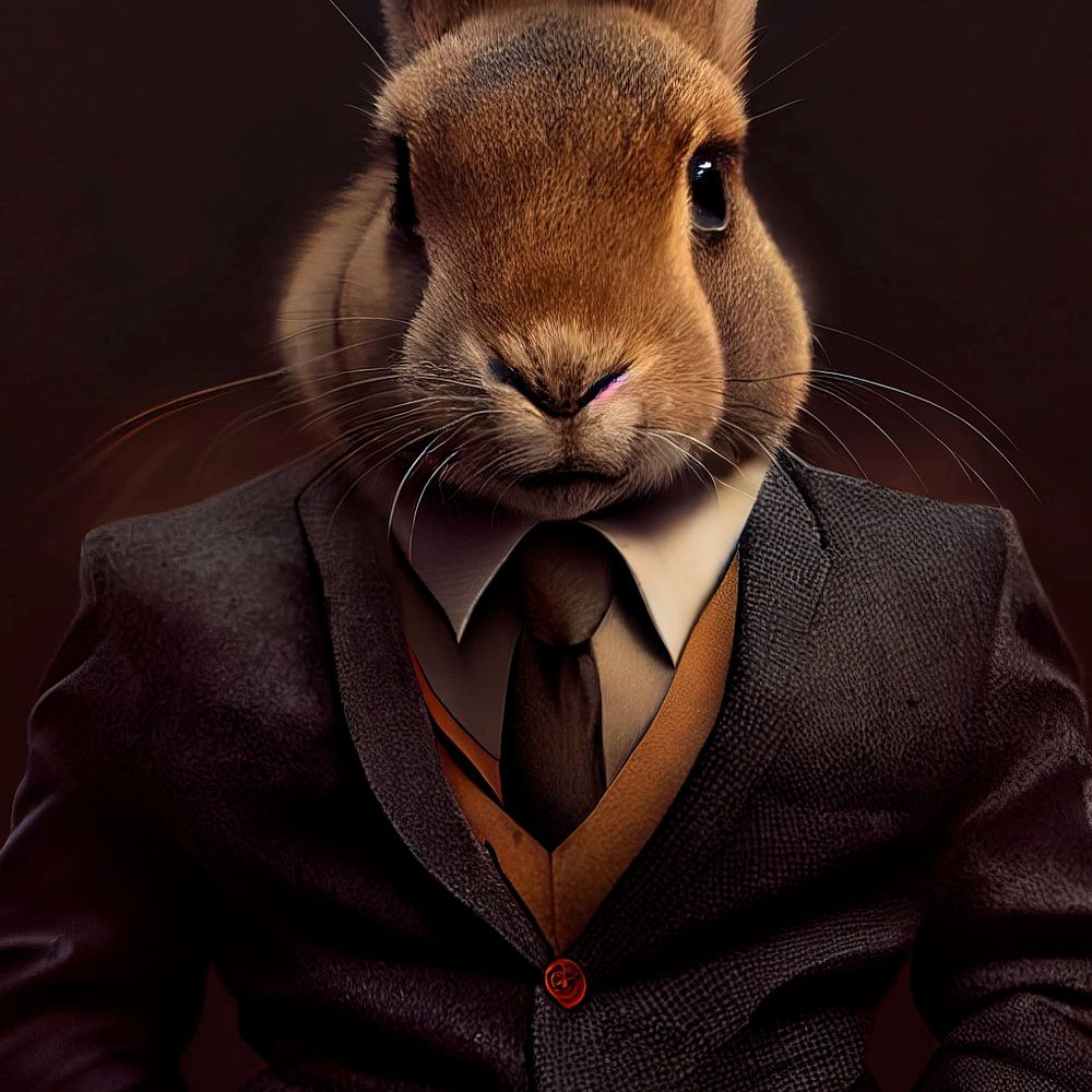 Dieses Kaninchen aus unserer Kollektion "Tiere im Anzug" ist das perfekte Beispiel für eine gelungene Balance zwischen stattlich und verspielt.