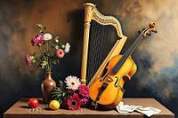 Stillleben mit Harfe und Violine von Wandbilder-Shop