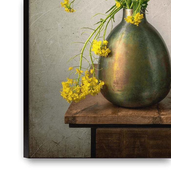 Bestelle dieses Landschafts-Wandbild Stillleben mit Raps. von Alie Ekkelenkamp als Kunstdruck auf Leinwand, Alu-Dibond, als Poster, Fototapete oder Acrylglasbild.