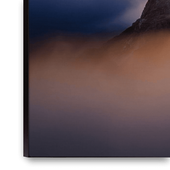 Ihre gewählte Kunst auf Leinwand, gespannt in einem Aluminiumrahmen. Schnell und einfach austauschbar für eine frische Ausstrahlung und ganz nach Ihren Wünschen.
