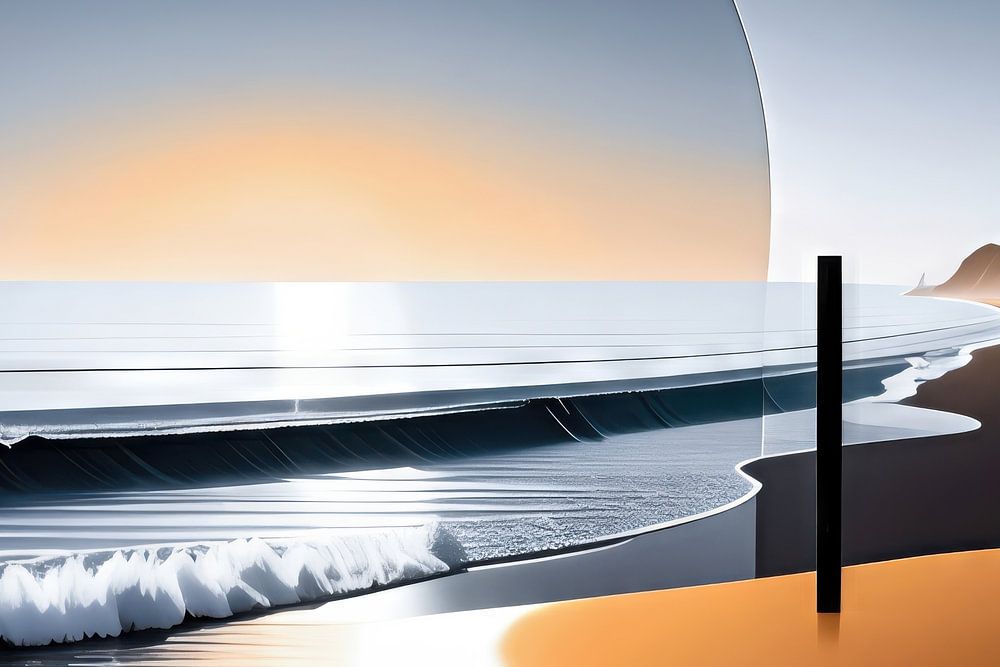Diese Arbeit aus meiner Serie „Strand und Meer surreal“ verbindet die visuelle Kraft der Küstenlandschaft mit der Präzision geometrischer Formen zu einer traumartigen Komposition. Der goldene Sandstrand und die sanften Wellen des Meeres bilden die natürliche Grundlage, überlagert von einem riesigen, halbtransparenten Kreis, der wie ein Fenster in eine andere Dimension wirkt. Ein kleiner schwarzer Kreis darin erinnert an einen Himmelskörper, während ein weißer Monolith und ein schmaler schwarzer Pfosten die Szene ins Futuristische erweitern.